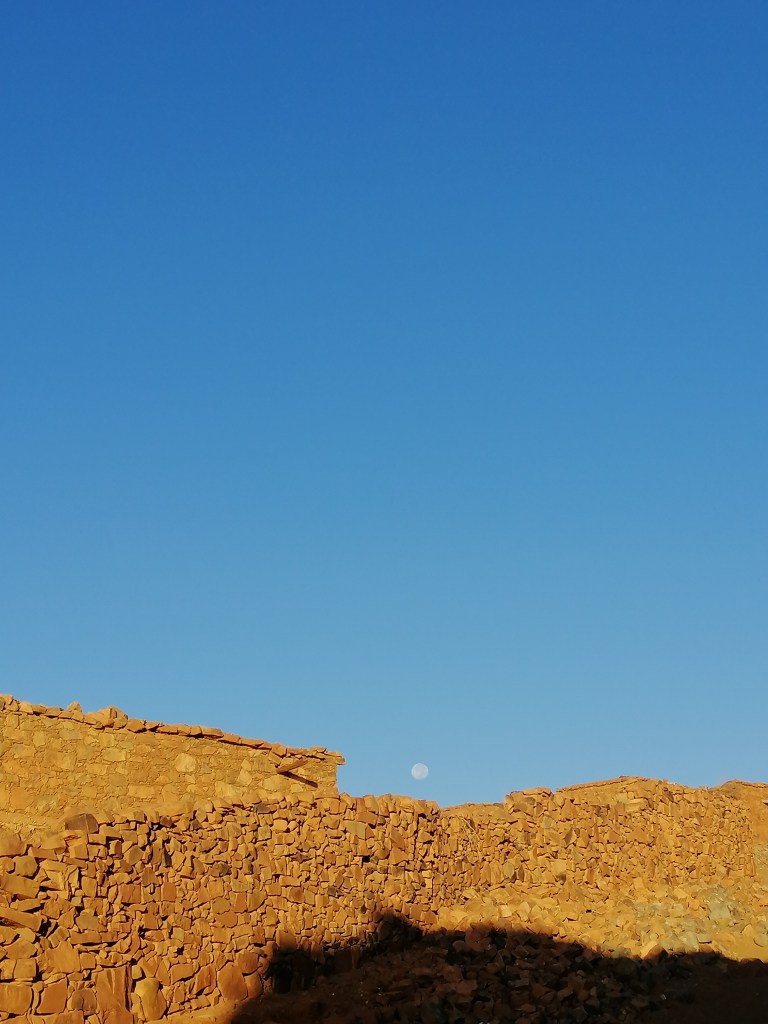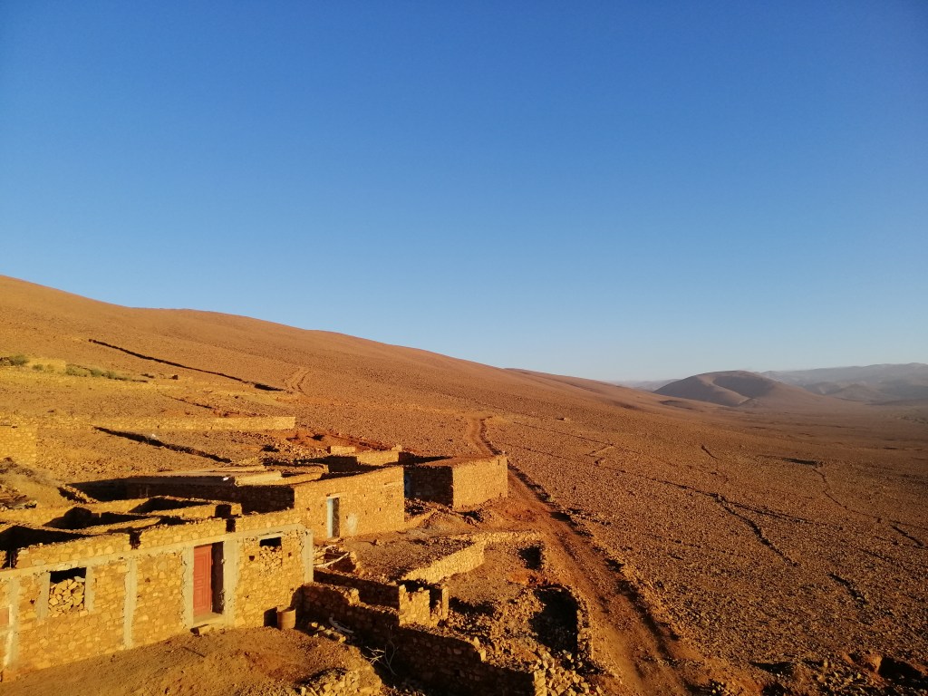Les garçons jouent au foot durant le meghreb, à ces heures-là, le village est recouvert d’un voile orange, la pierre reflétant les derniers rayons de soleil, mes nouvelles amies et moi en profitons pour nous prendre en photo le regard posé vers le large horizon. Nous nous drapons de lourds tissus, comme la terre sous nos pieds. Nos yeux sont écarquillés devant ce spectacle de splendeur. La nuit s’installe petit à petit durant ces soirées d’automne, peu de lumière éclaire le village. Lorsque la nuit arrive, le village s’endort.